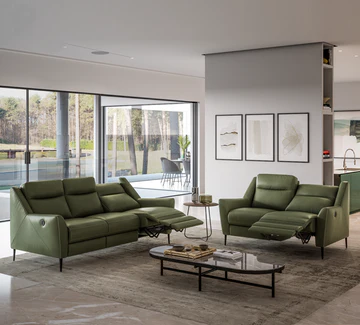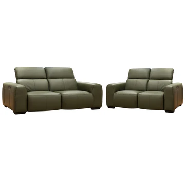 Half Leather Power 3+2 Seater Recliner Green - ZEC7